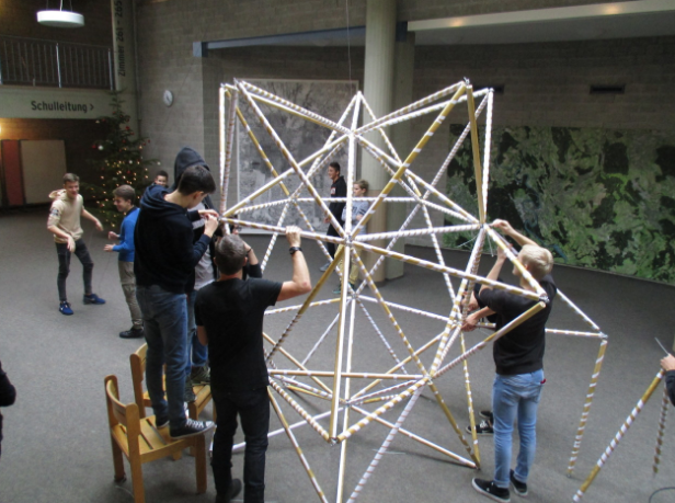 Während der Spezialwoche der Realschule entstand in gemeinschaftlicher Arbeit ein IKOSAEDER-Stern.